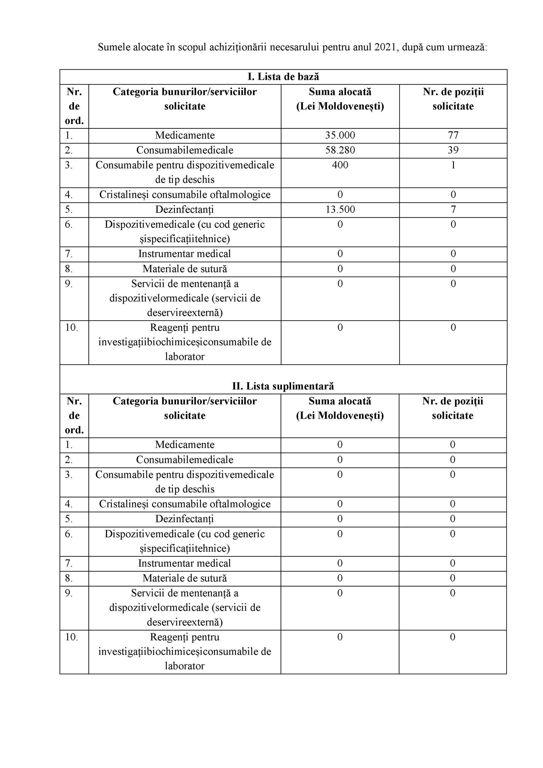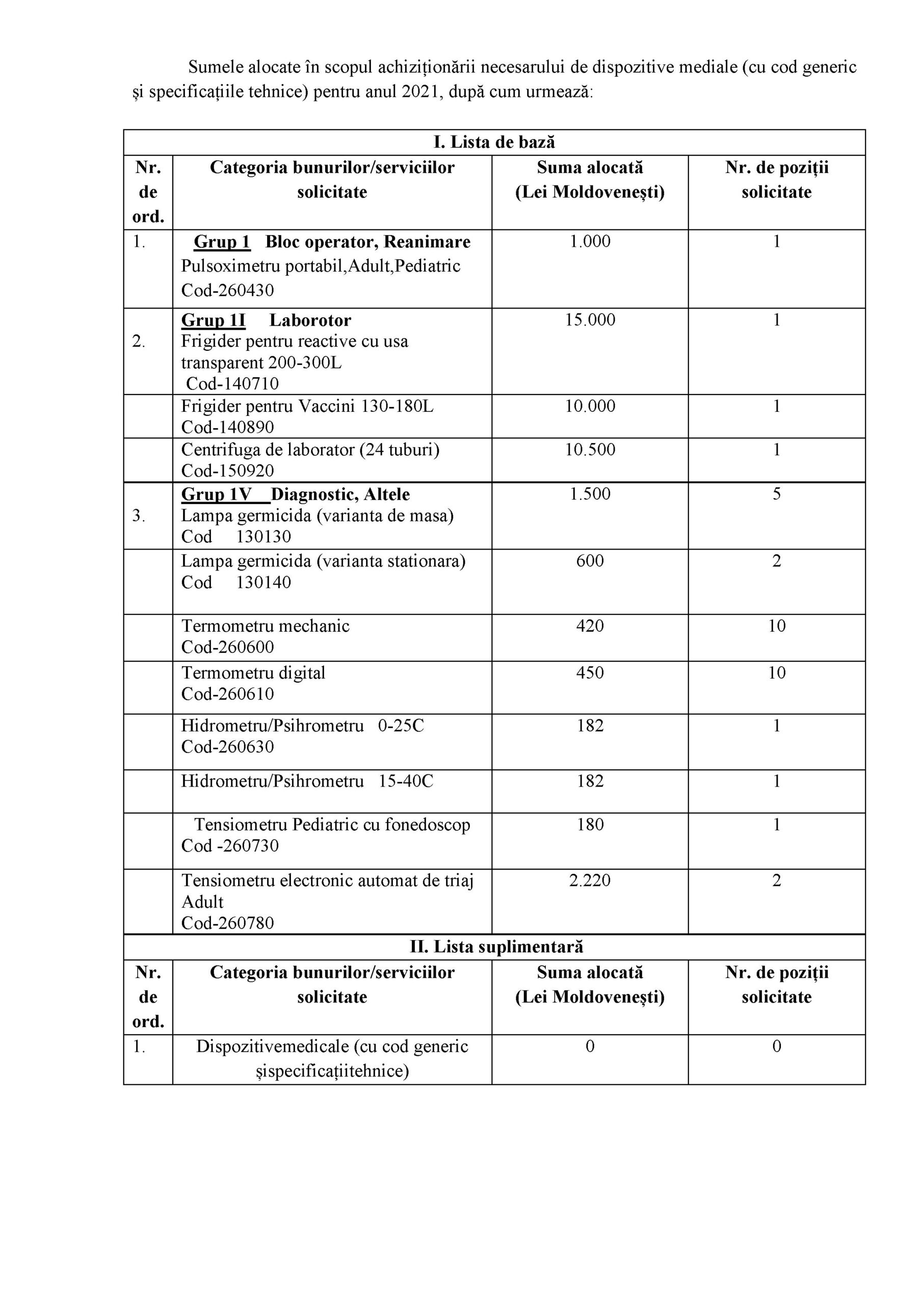 - Список лекарственных средств разрешенных в Республике Молдова для выбора необходимой медико-санитарных учреждений на 2021 год с последующим проведением государственных закупок