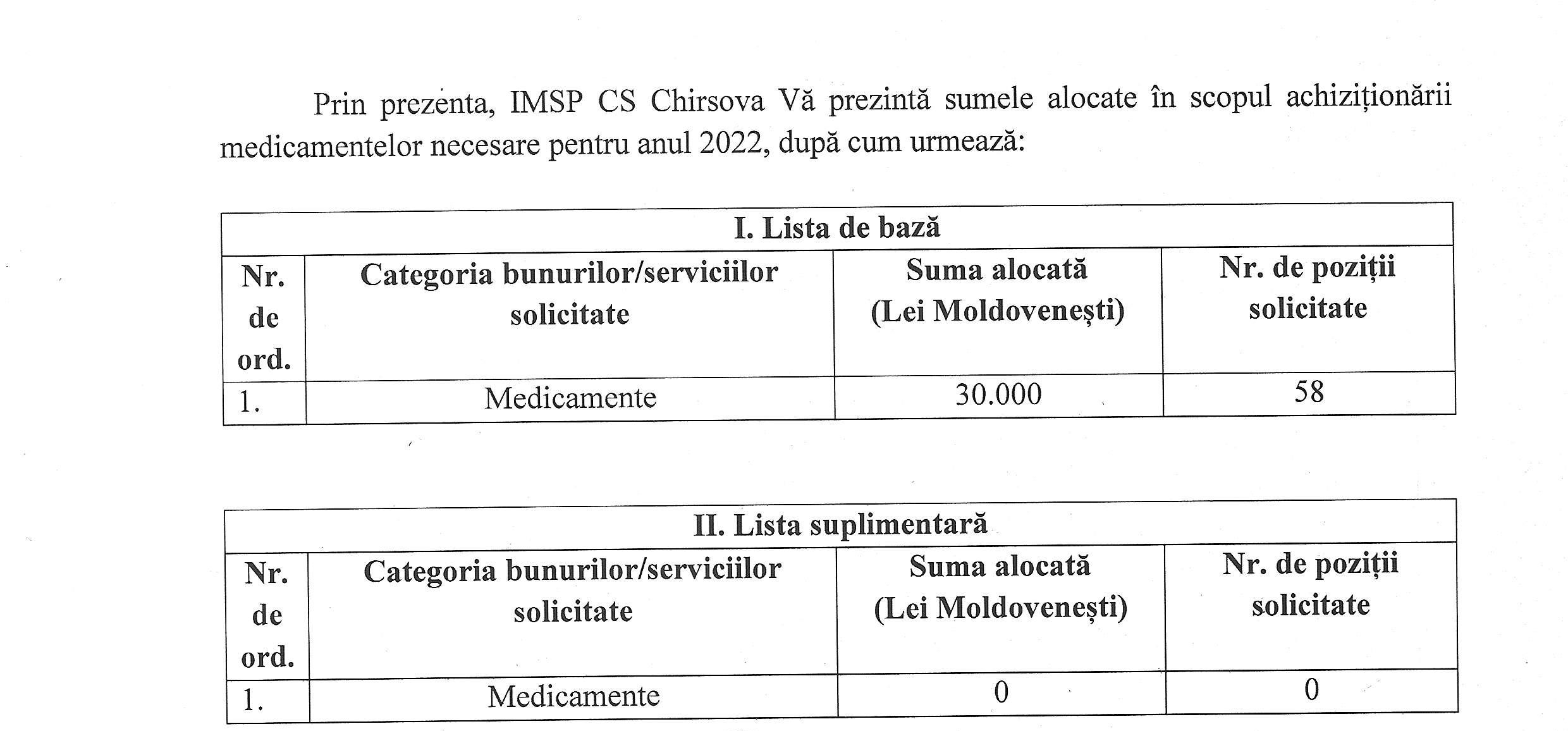 - Список лекарственных средств разрешенных в Республике Молдова для выбора необходимой медико-санитарных учреждений на 2022 год с последующим проведением государственных закупок
